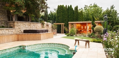 Maga a szaunaház egy komplett wellnesskert eleme. A szaunaház mellett a wellnesskertben helyet kapott egy 20 méter hosszú napozóterasz, mely a szaunaházzal megegyező THERMOWOOD Tiroli fenyő alapanyagból készült. A napozó egy különleges beépített masszázsmedencét tartalmaz, ahol a nagyméretű kerti medencében történő úszás során kellemes pihentető élményt nyújt.