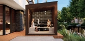 A karakteres, ívelt mennyezet egyedi vonalvezetése kombinálva a thermowood kőris anyagfelhasználással egy letisztult, minimalista mégis exkluzív külsőt és belsőt kölcsönöz a szaunának.