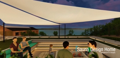 A szaunázás lehet életforma, a mindennapok része, egyszerre kikapcsolódás és felfrissülés. A szauna segít szervezetünknek megszabadulni a salakanyagoktól, hatékony immunrendszer-erősítő és érregeneráló hatású. A szaunaház belső terében kialakításra került egy kombinált szauna gőzfürdővel, egy wc, zuhanyzó helység és a pihenőtér.